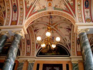 Proszeniumslogen wie auch zwei Kandelaber an der Decke des Zuschauerraumes. In